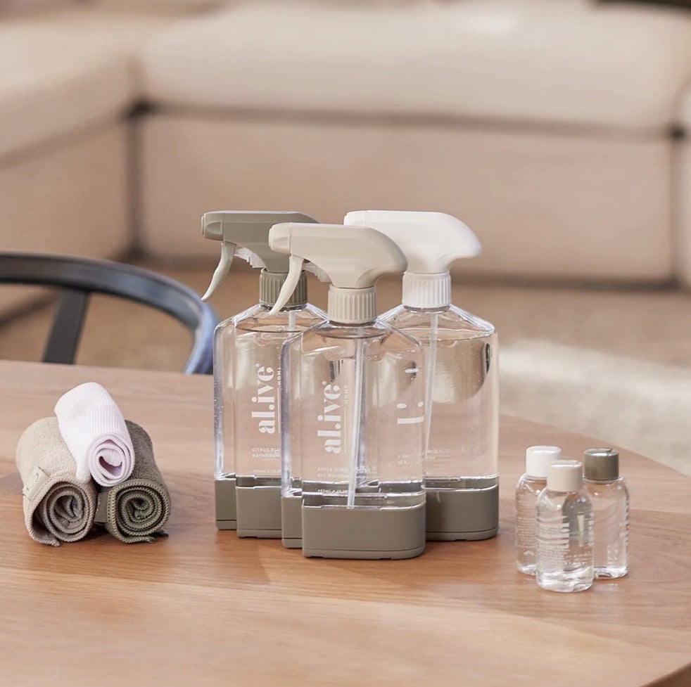 Introducing the al.ive home Cleaning Starter Kit, the perfect solution for anyone looking for a convenient, effective and eco-friendly cleaning system.