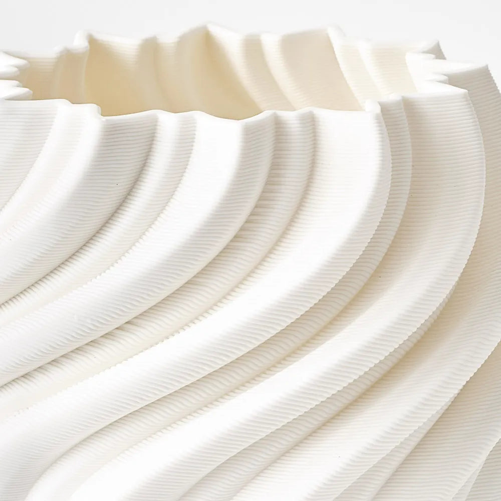 This very impressive sculptural 3D-printed vase in ivory is perfect for faux flowers or as a decorative piece. For adding water, simply insert a small waterproof vessel inside the pot.