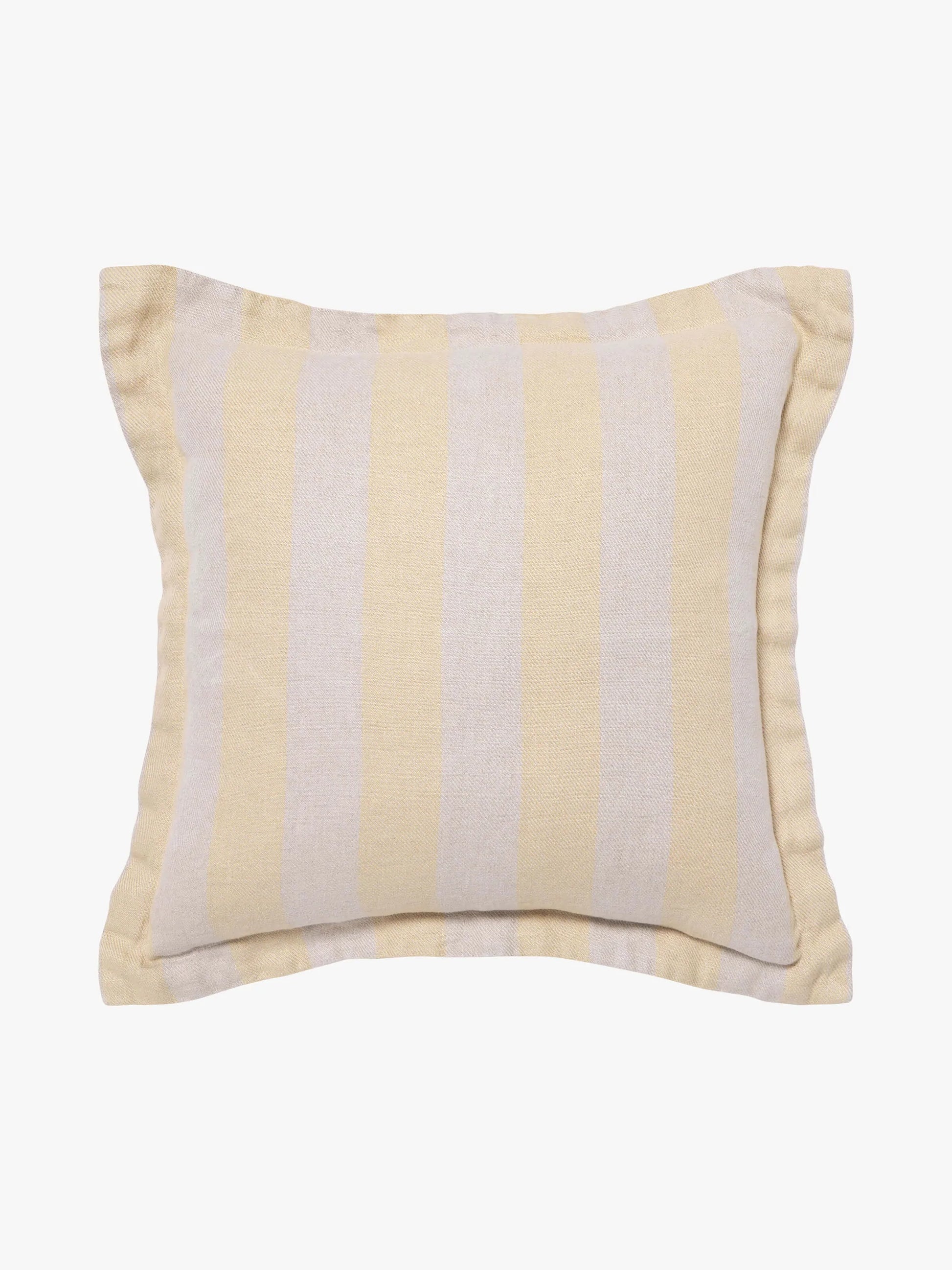 Soft, stylish, and super comfortable, our Voyage cushion collection is crafted from luxurious European linen. Featuring handwoven stripes with a relaxed edging, these timeless cushions will bring a holiday feel to any space. Available in Limone/Natural, Sage/Natural and Tangerine/Natural, perfect for mix and matching.