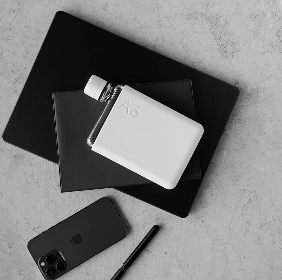 A mere 3cm thick, the A6 Drink Bottle slides neatly into your bag alongside notebooks, tablets and laptops to hold a massive amount of water without taking up a massive amount of room. Unlike traditional round drink bottles, which sit awkwardly no matter what else you're carrying, the flat design of memobottle drink bottles allows for a Tetris-style fit that helps optimise your bag while helping keep you hydrated. Paired with its minimal yet sophisticated styling, it's no surprise that memobottle keep winning design awards.