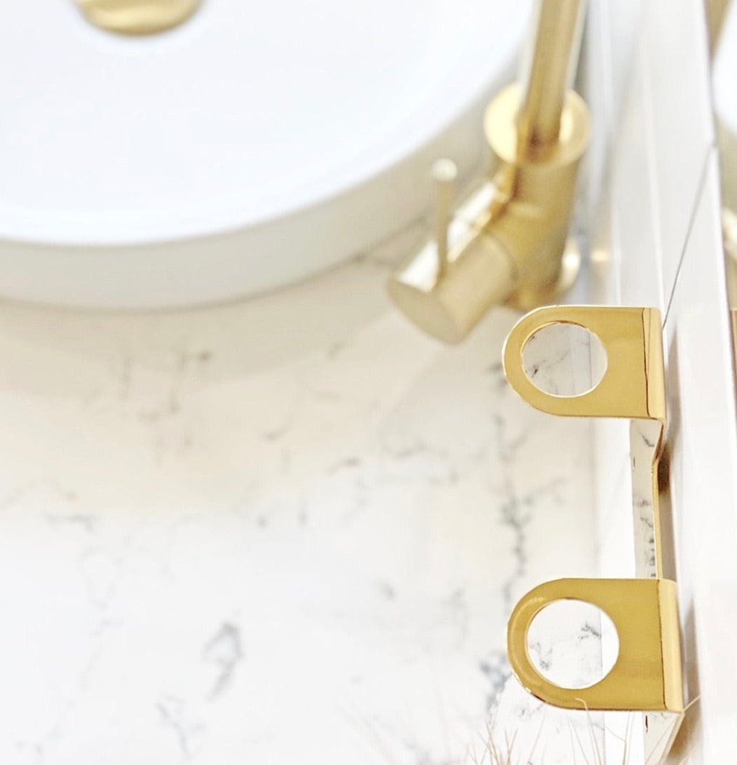 Custom made from 304 stainless steel and gold electroplated. Comes with complete installation instructions. Can be mounted using the attached 3M adhesive strips, or with the included screws and wall plugs.