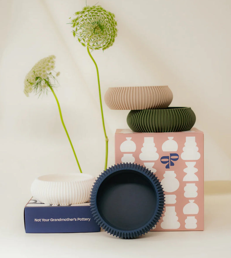Our products are designed and printed by us in Melbourne, Australia. They are made of Polylactic Acid 3D printing filament (PLA).